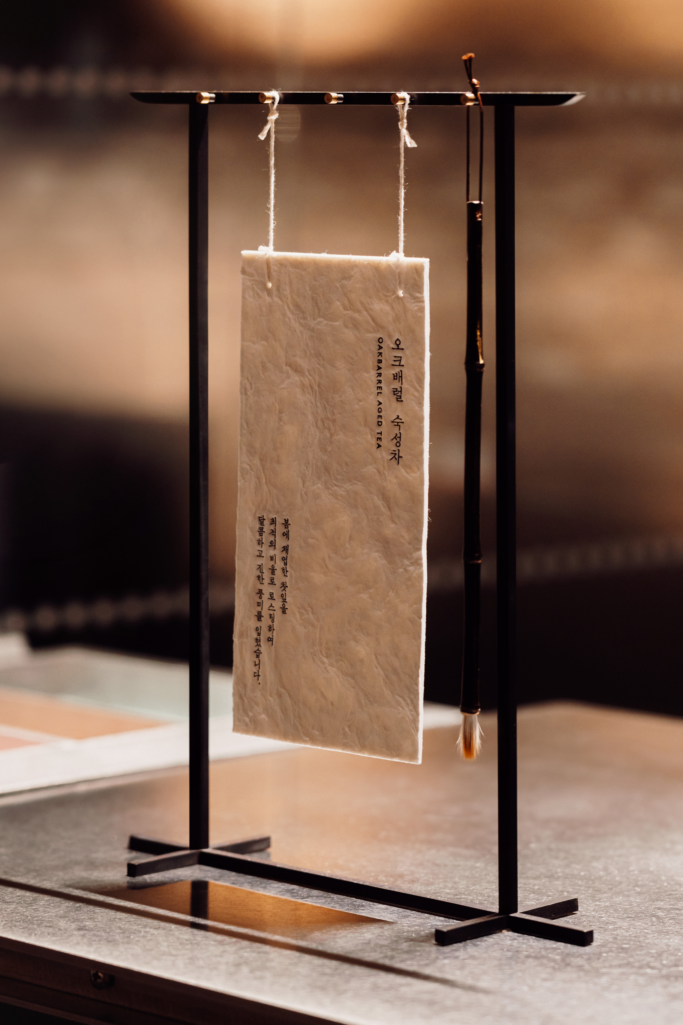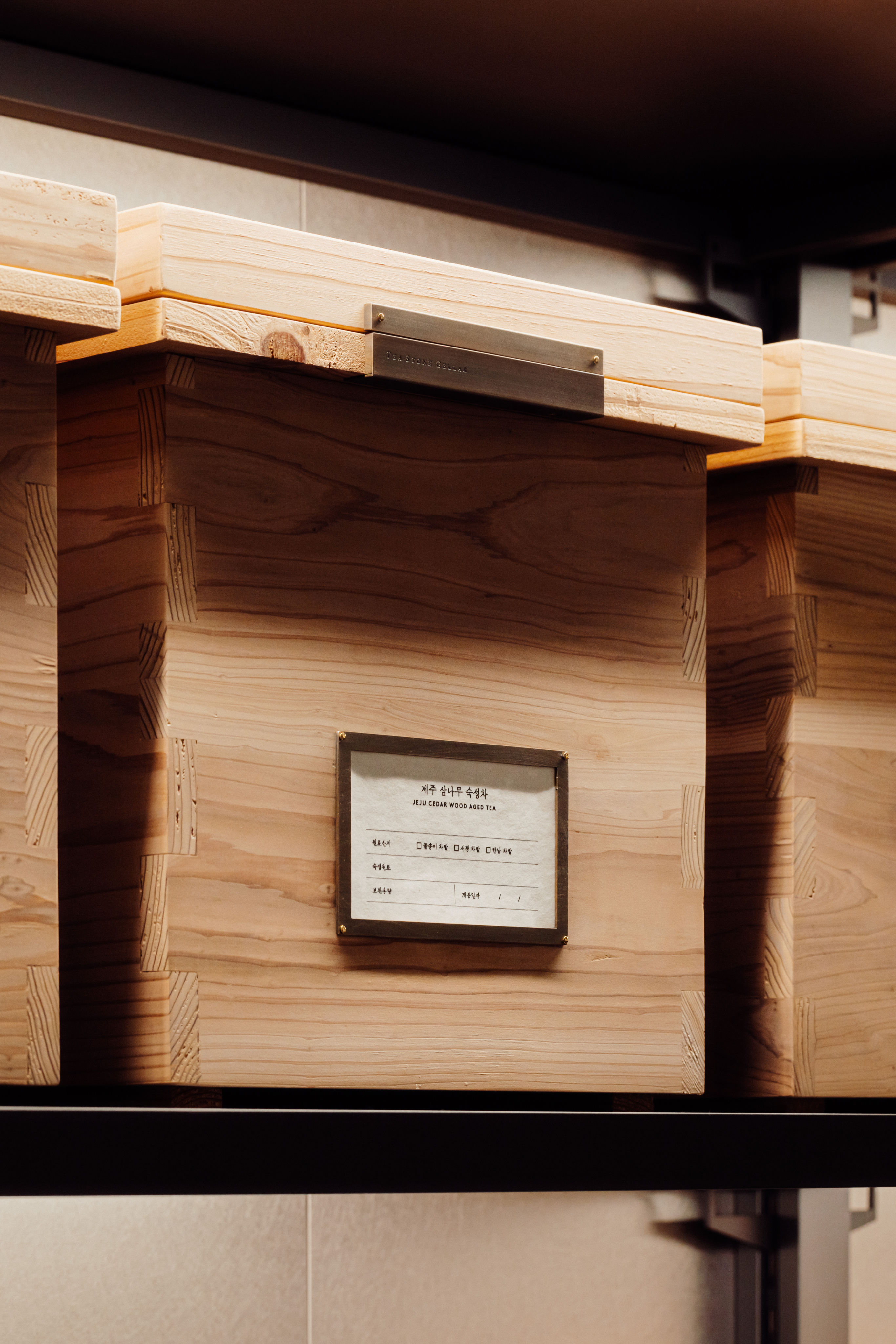 The Osulloc Tea Stone Cellar is a dedicated tea-aging space that captures the essence of Jeju’s nature and the profound depth of time. Located in the lower level of the 'Tea Stone'—a structure inspired by the narrative of a traditional inkstone—this space creates a mystical atmosphere where tea matures in silence and warmth.